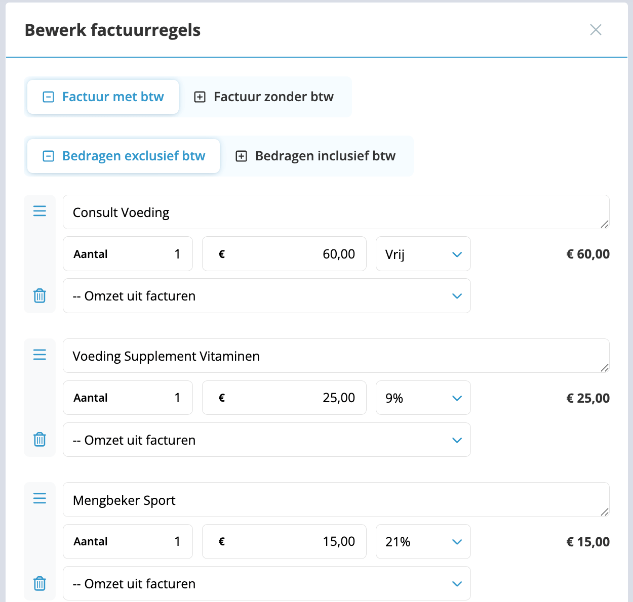 Facturen met (deels) vrijgestelde btw: Maak nu eenvoudig facturen met gecombineerde btw-tarieven (vrijgesteld, 9% én 21%) op één factuur.