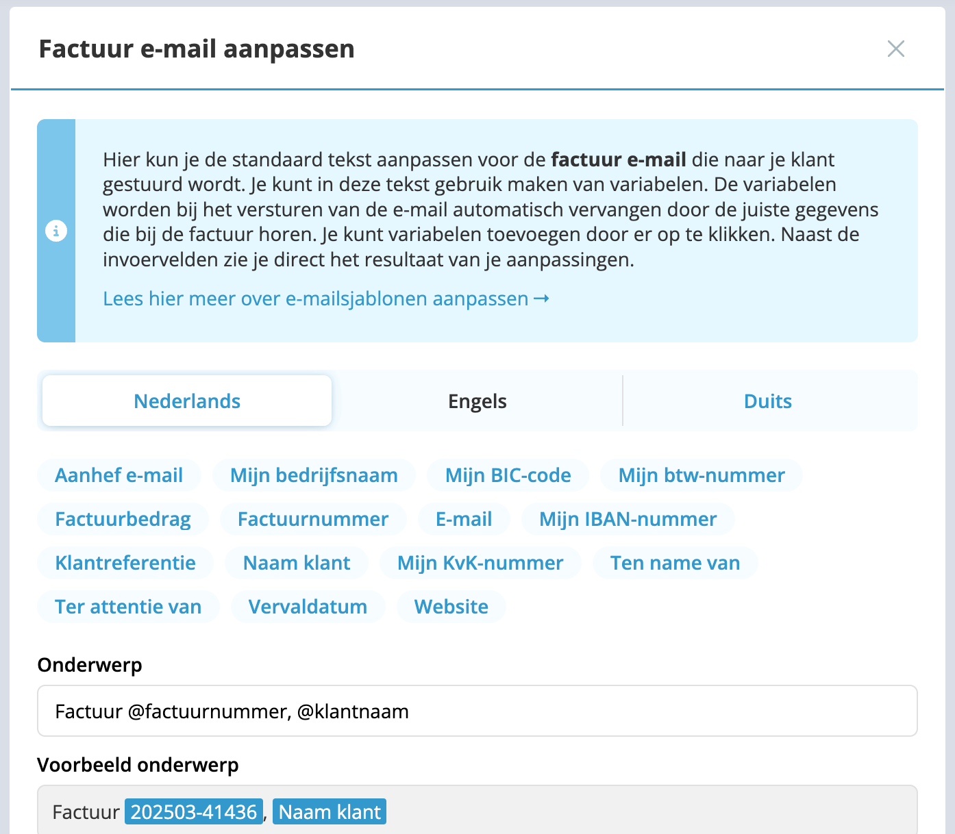 Taal voor factuur en offerte selecteer je bij 'Klanten', zodat iedere factuur en offerte automatisch in de juiste taal wordt verstuurd.
