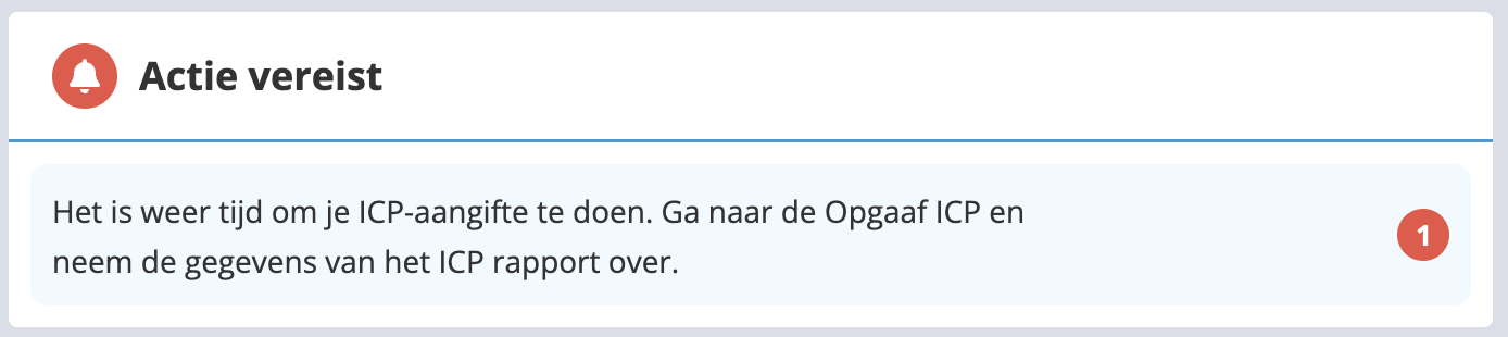 Update voor ICP: Er verschijnt een melding op het dashboard om aan te geven dat de ICP-aangifte ingediend moet worden.