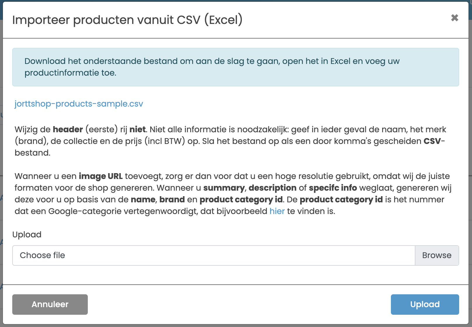 jortt.shop Update: Importeer producten vanuit een andere webshop via een csv file.