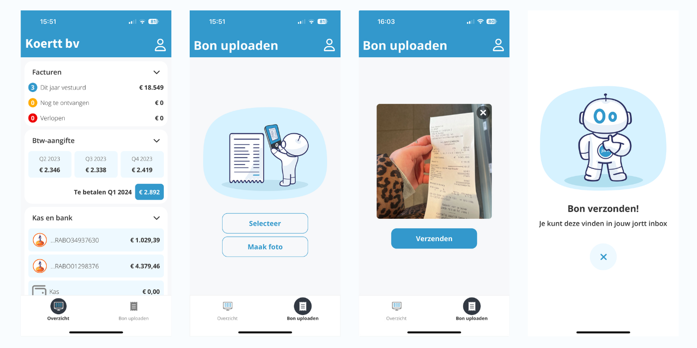 Tailor made boekhouden. Jortt past zich nu aan aan je bedrijf. Wel of geen personeel, auto op de zaak? Bv of eenmanszaak? Met een paar eenvoudige vragen past Jortt zich aan en past als een op maat gemaakte mantel om je bedrijf. Dat maakt boekhouden makkelijker, leuker en voorkomt fouten.