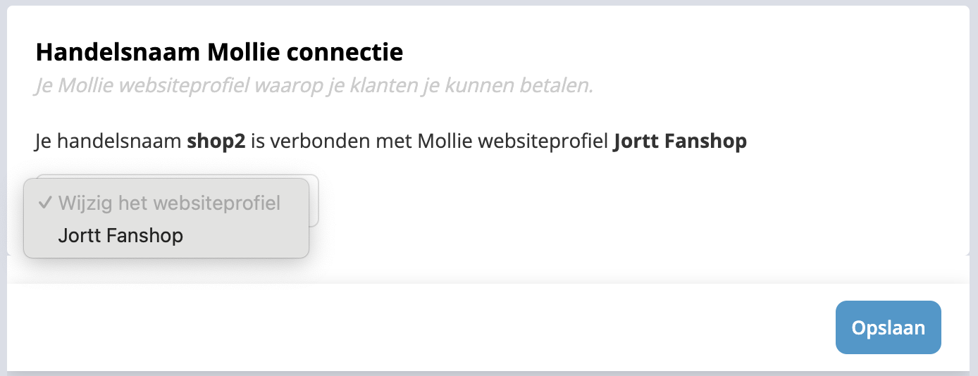 Update handelsnaam: Toevoeging van een Mollie websiteprofiel per handelsnaam.